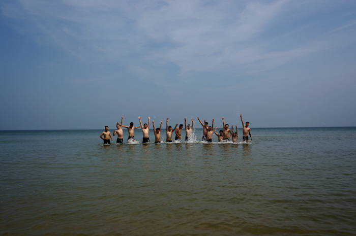 晚上我們下榻在海邊的輔特戴斯酒店,處于安全考慮,當(dāng)晚我們酒酣耳熱之后并沒(méi)有外出活動(dòng)。而是在第二天才下海,盡情的玩耍了一番。下午驅(qū)車前往青島,先后來(lái)到五四廣場(chǎng)、石老人、棧橋等景區(qū)。接下來(lái)我們就通過(guò)一組組的照片來(lái)欣賞一下我們?nèi)鹑A人的風(fēng)姿吧!